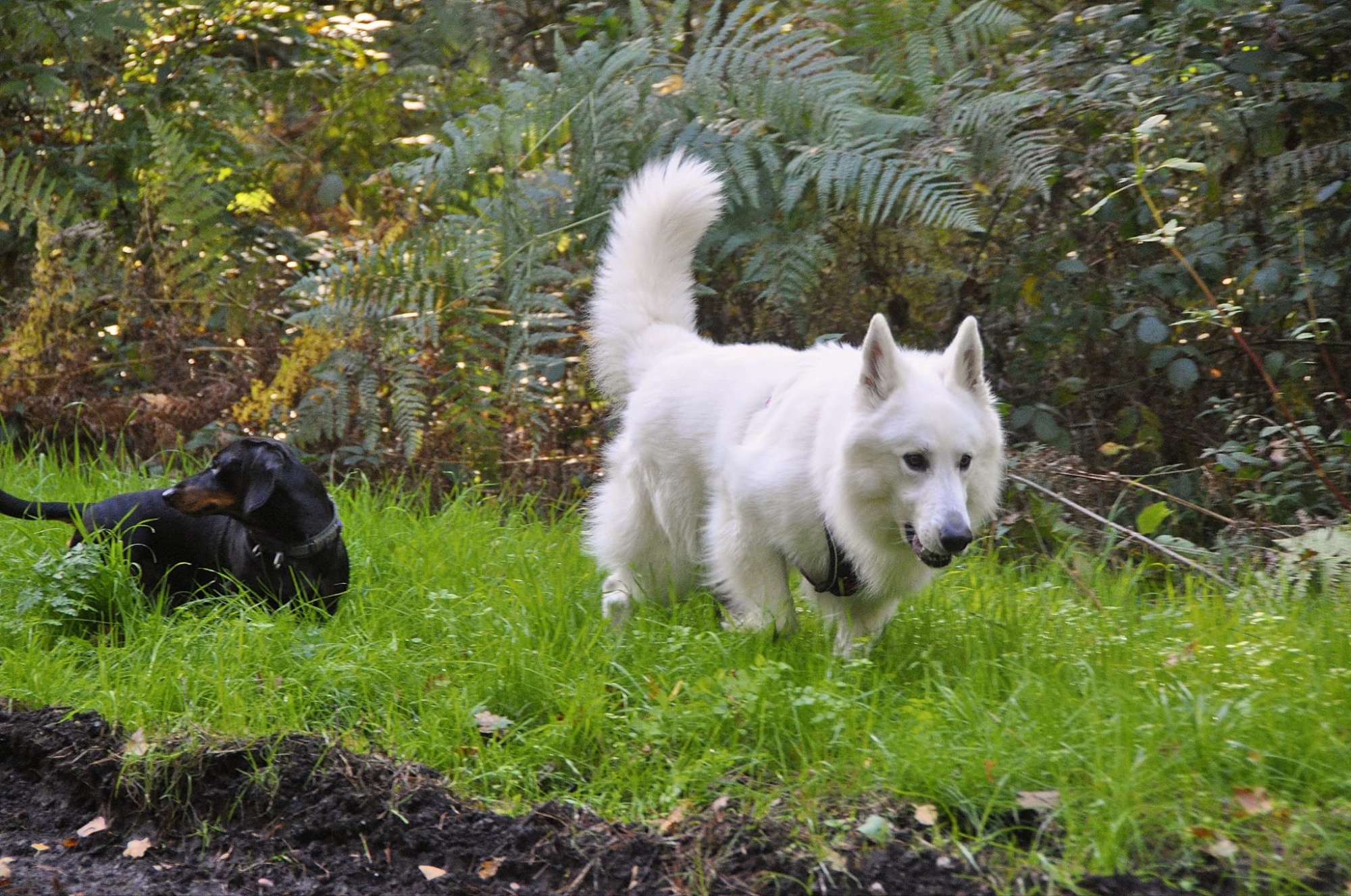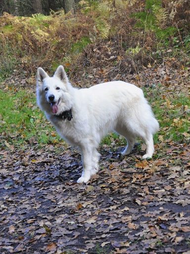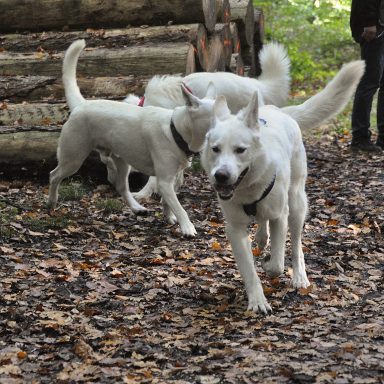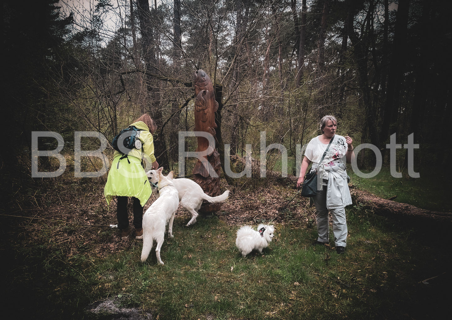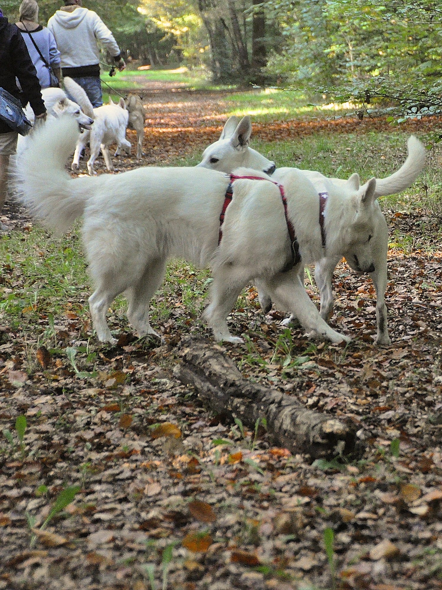 Trotz des durchwachsenen Wetters traf sich am Allerheiligen-Wochenende die fröhliche Hundegruppe BBS-Ruhrpott der Weißen Schweizer Schäferhunde in der idyllischen Anholter Schweiz in Isselburg. Zehn strahlend weiße Schäferhunde und zwei Gasthunde machten sich gemeinsam mit ihren Zweibeinern auf zur Herbstwanderung.