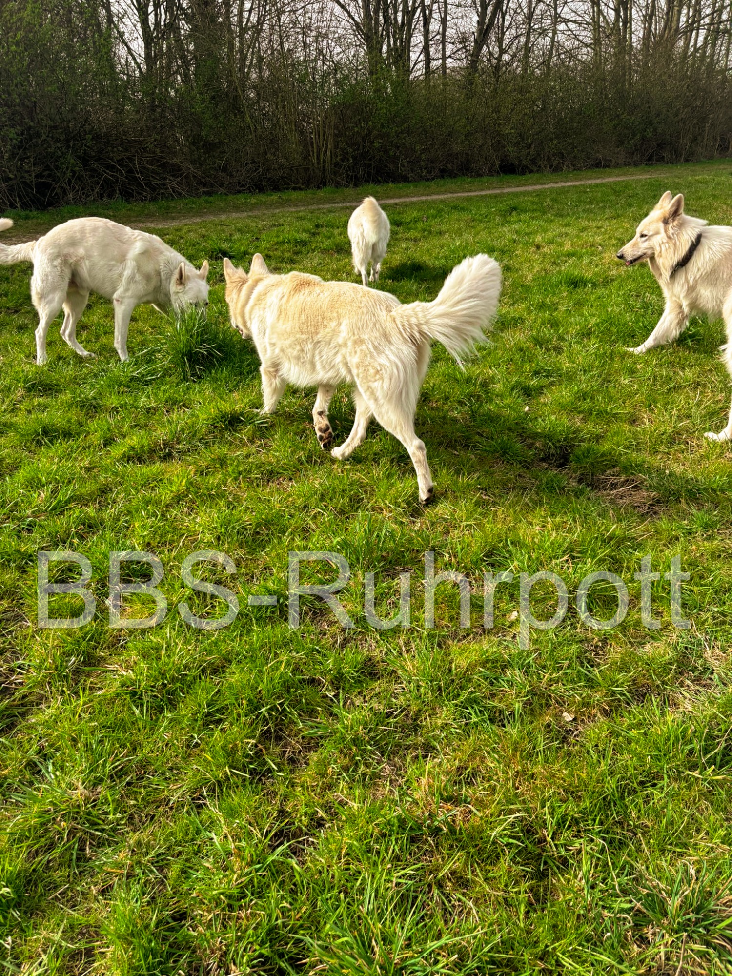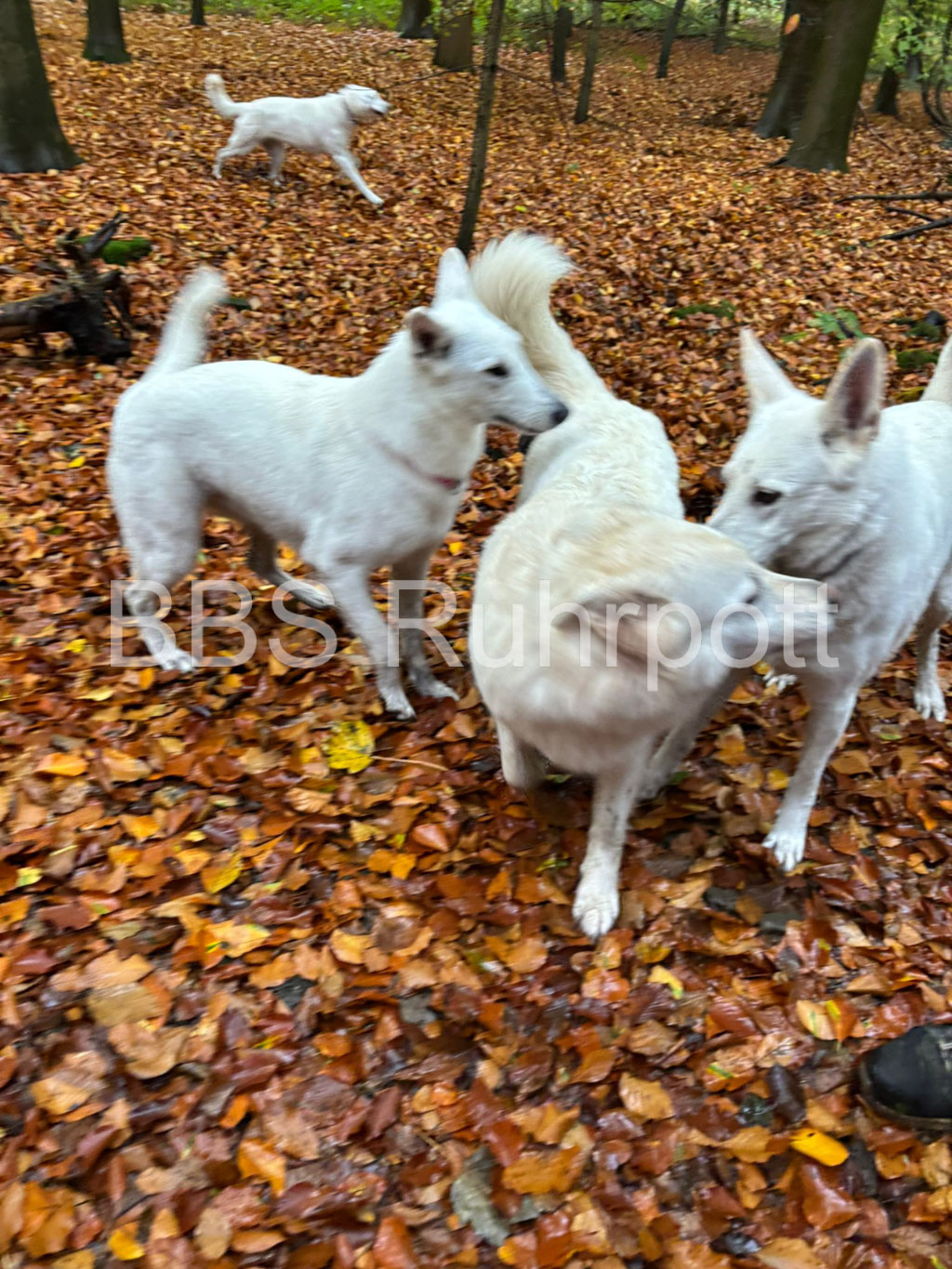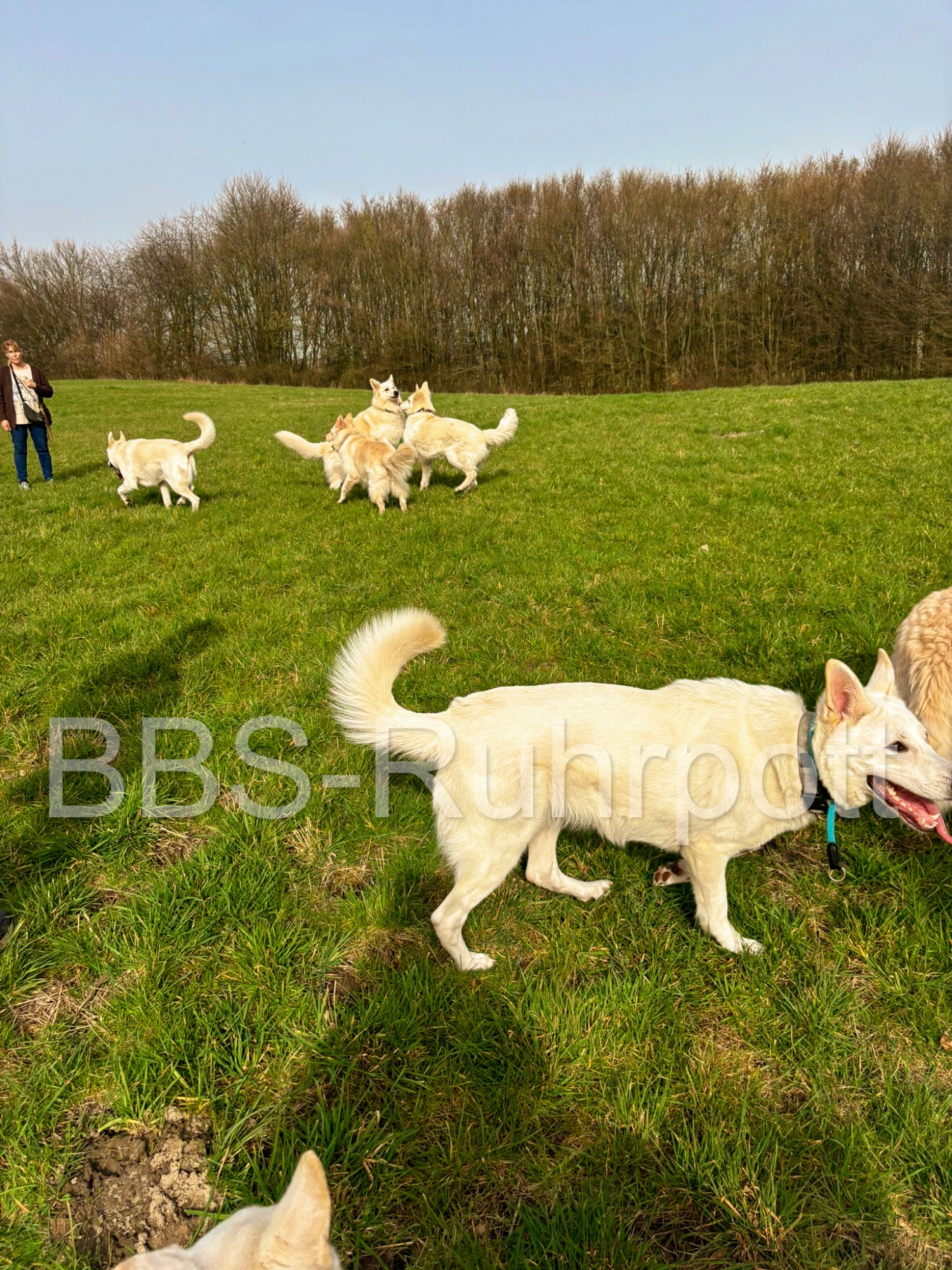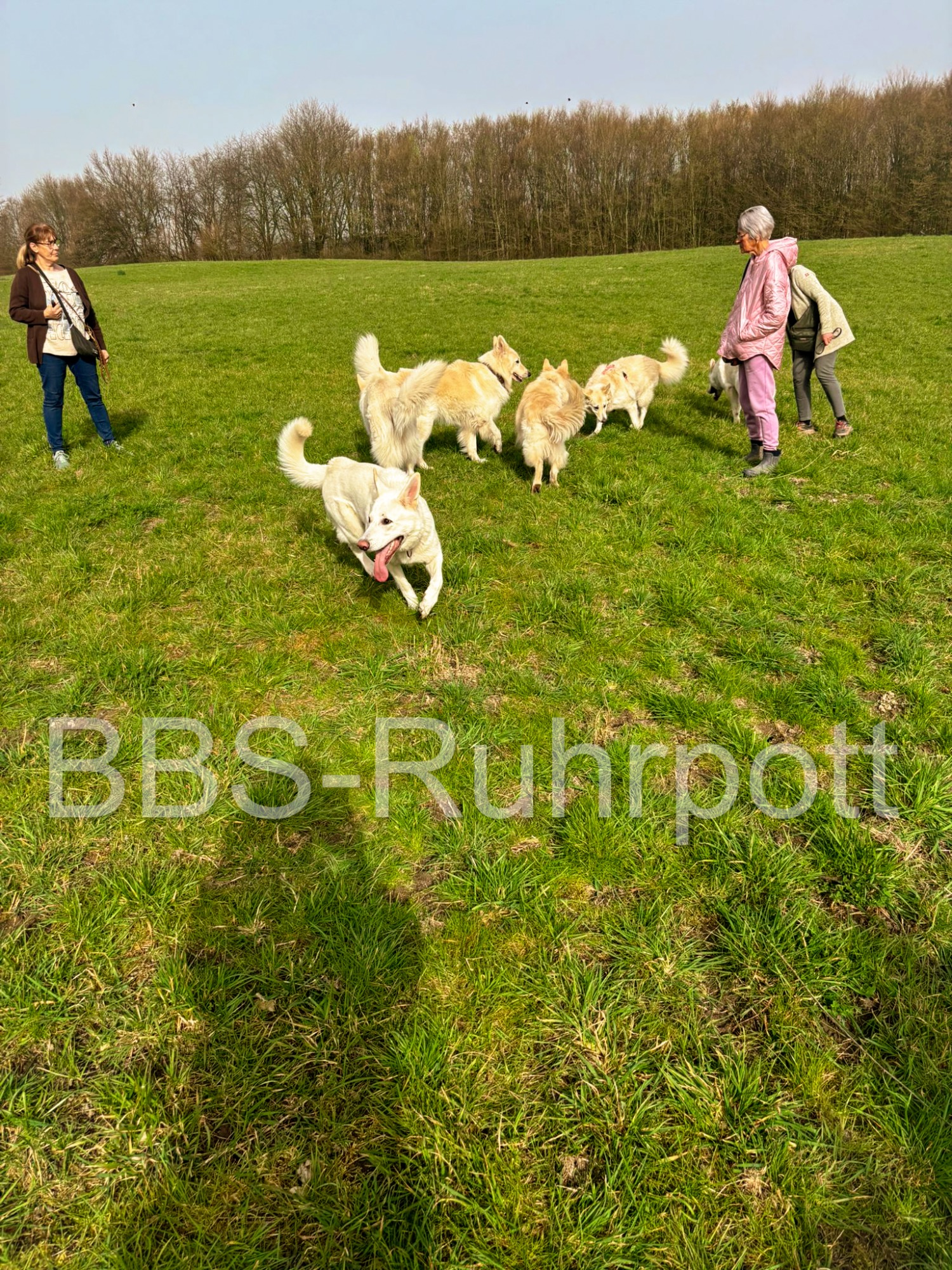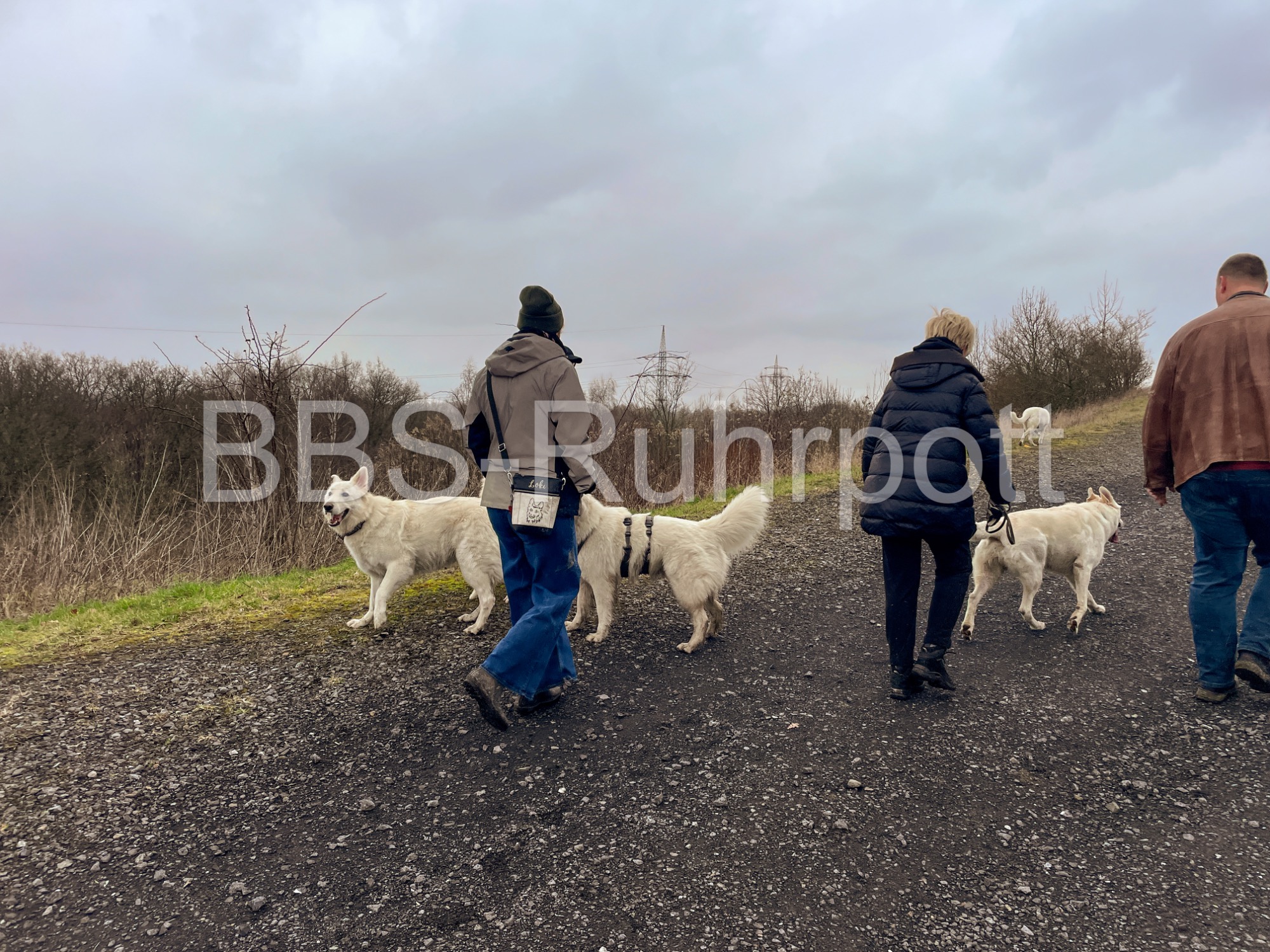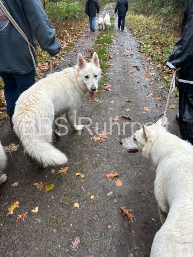 Besonders schön war in diesem Monat die große Freude über einen Gasthund in der Runde. Auch er ein stolzer Berger Blanc Suisse, wurde er herzlich in die Gruppe aufgenommen – von Zwei- und Vierbeinern gleichermaßen. Für die Gemeinschaft der BBS-Ruhrpott ist genau das ein besonderer Moment: neue Hunde kennenzulernen und die Leidenschaft für diese wunderbare Rasse zu teilen.