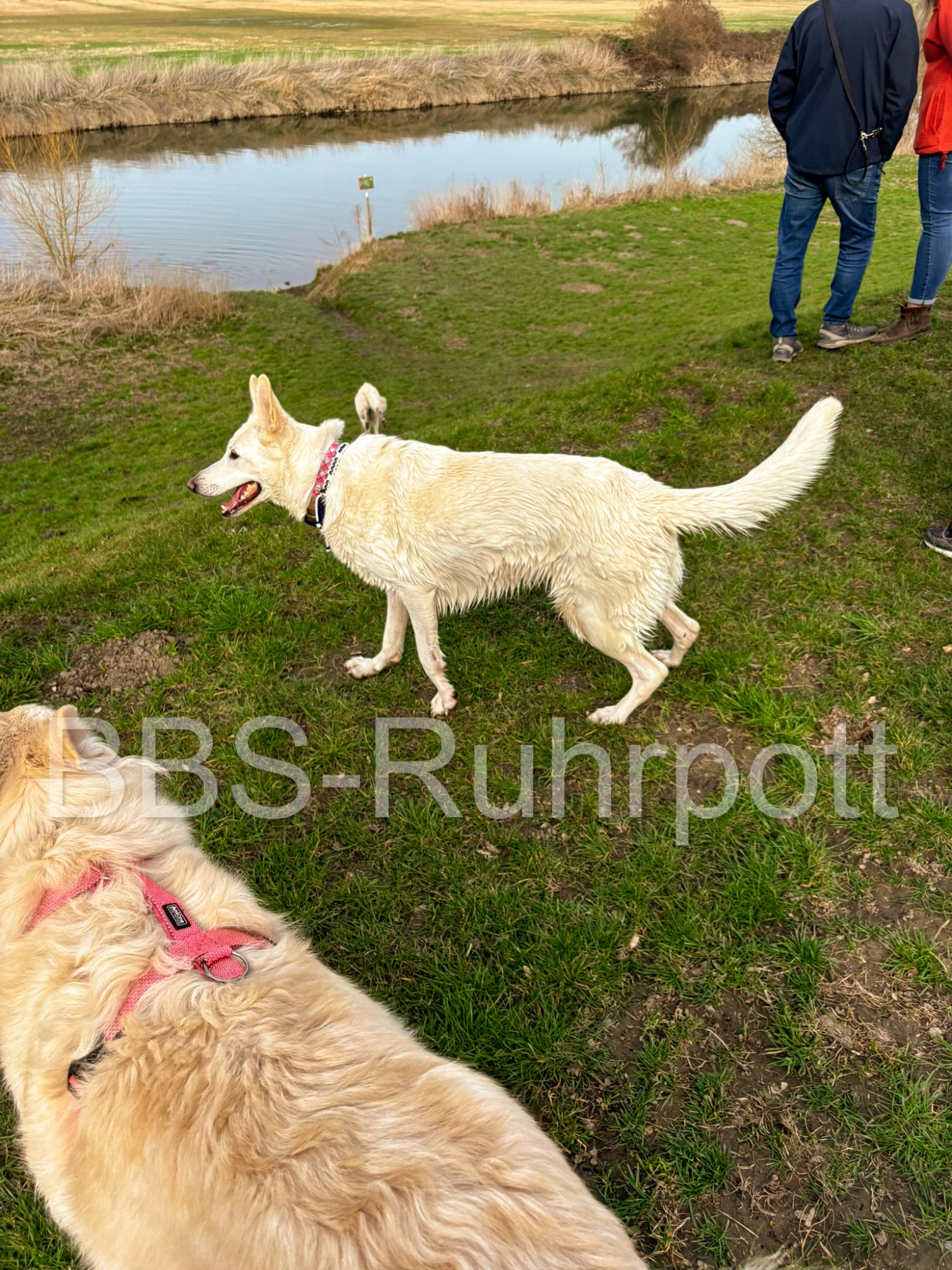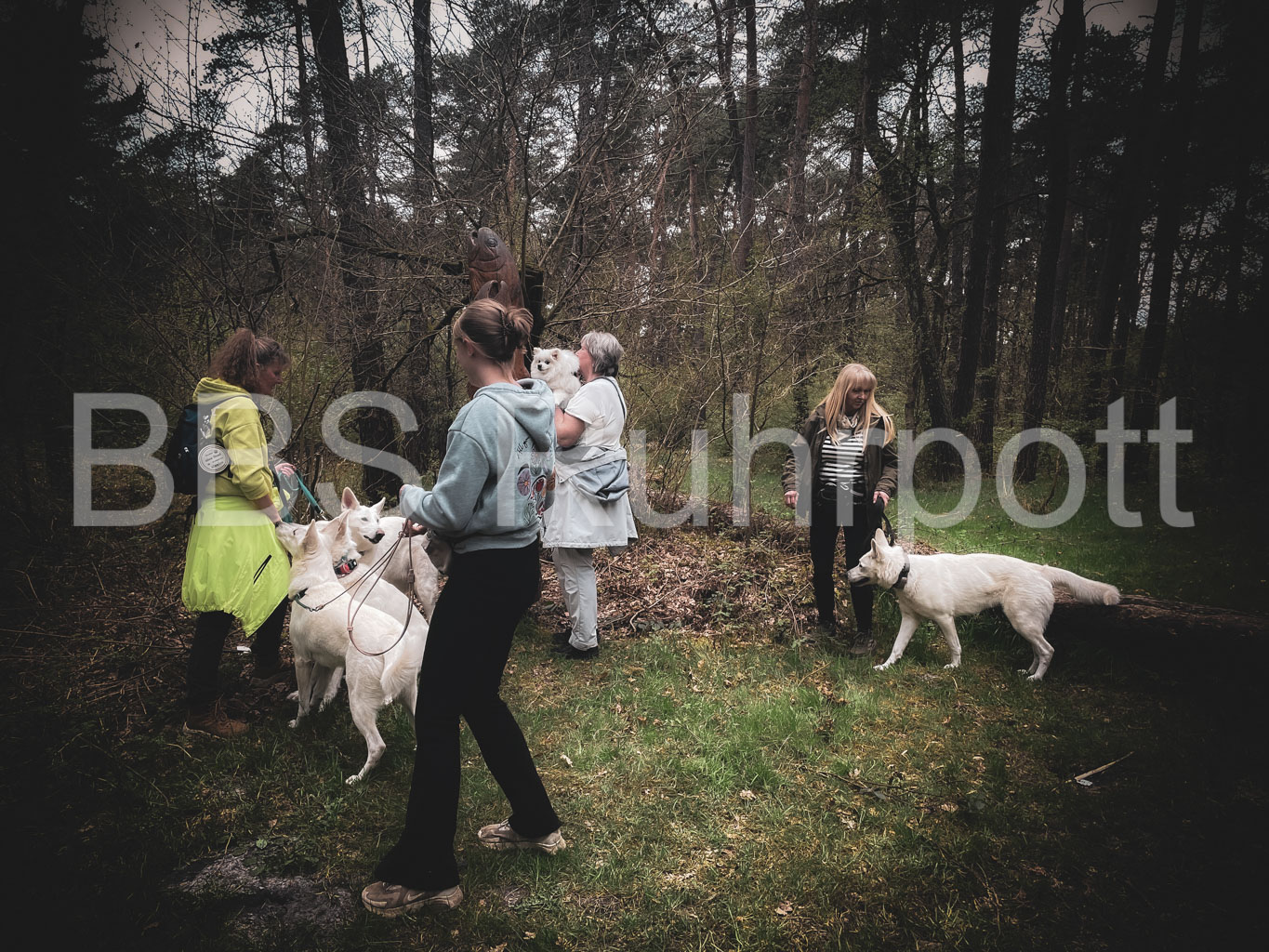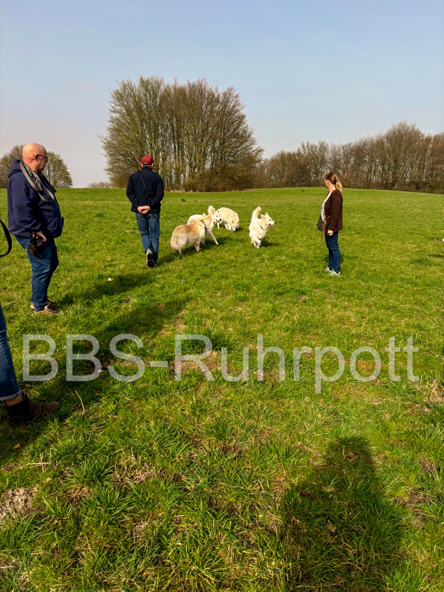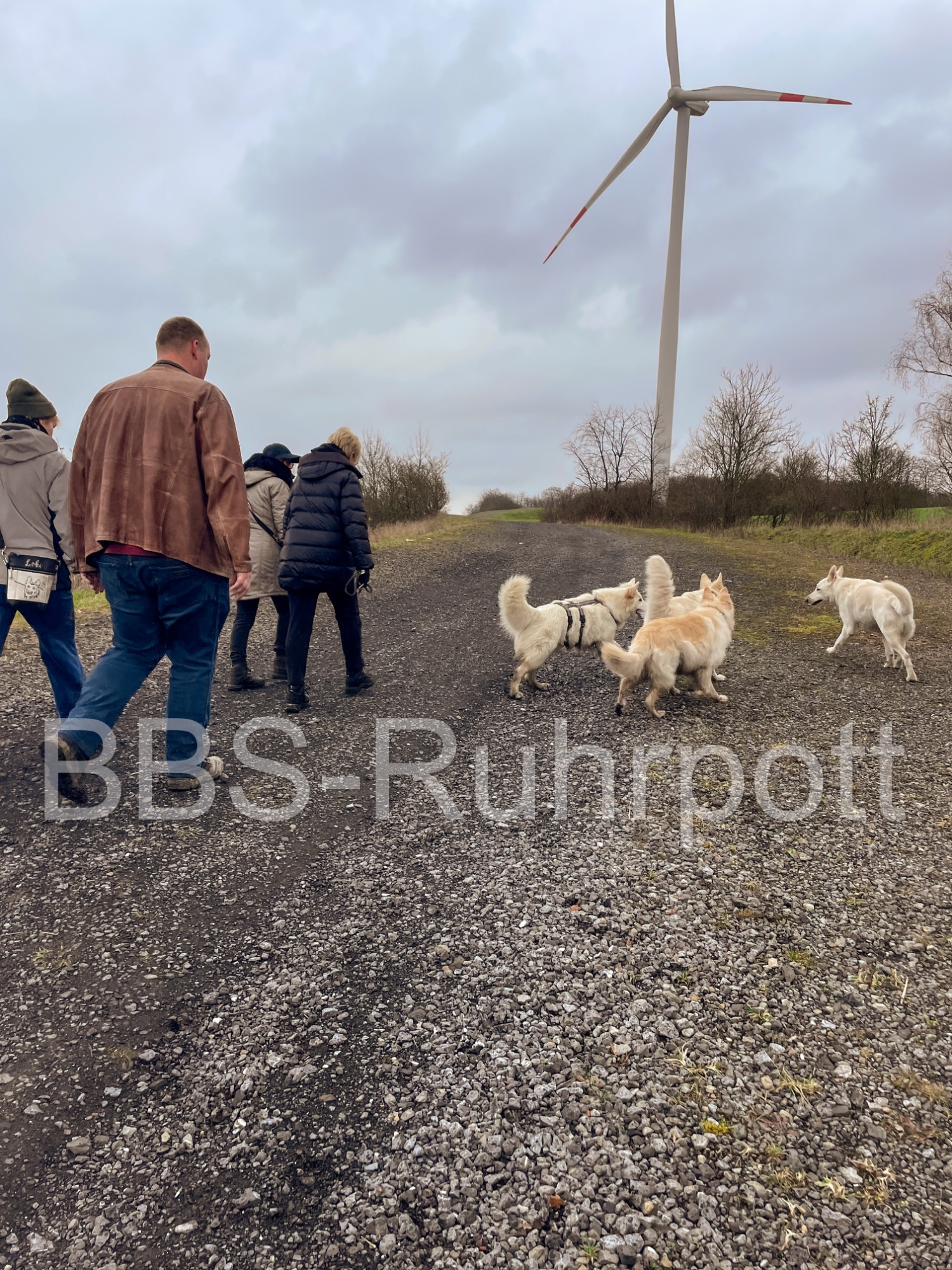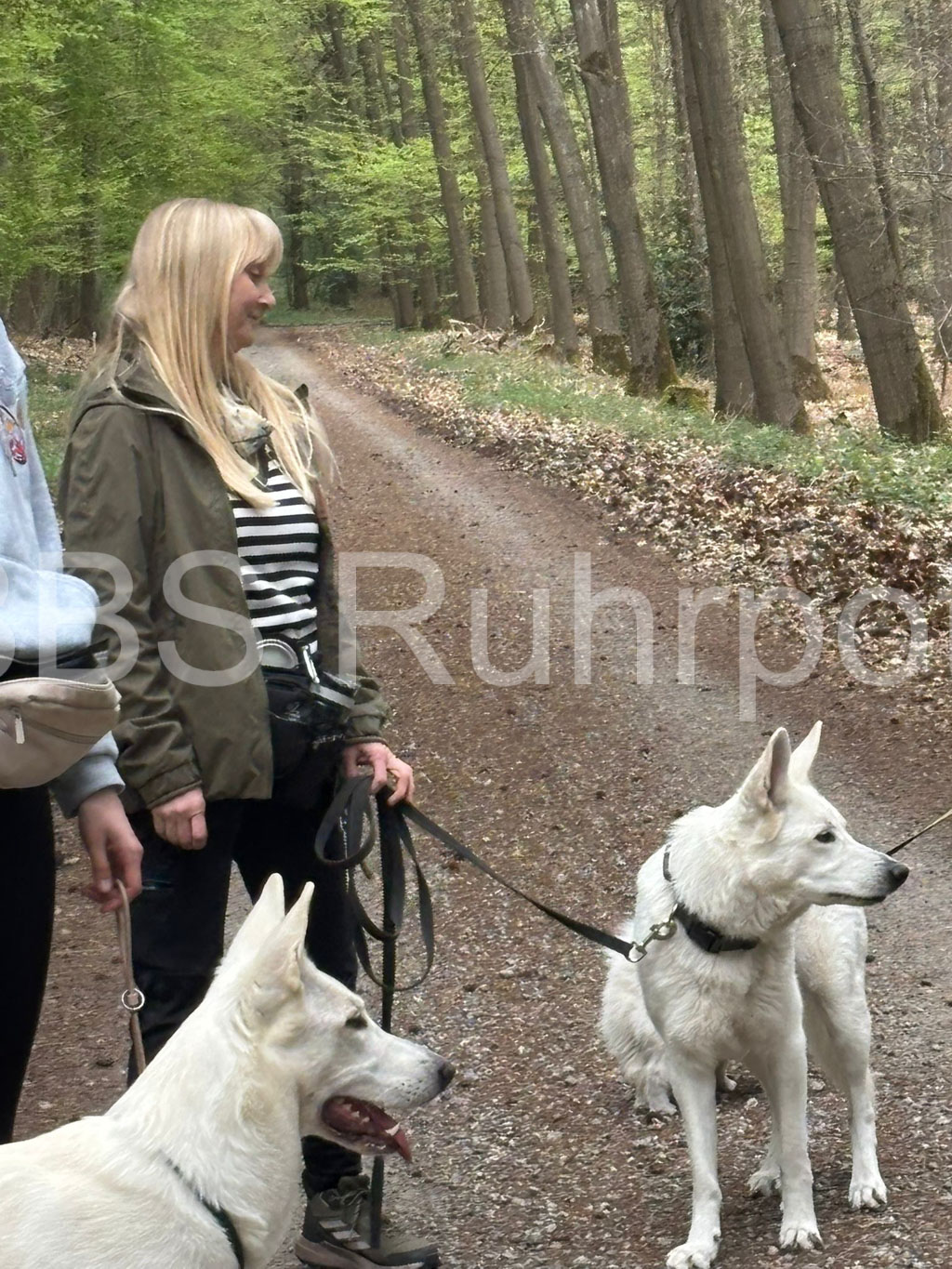 Besonders schön war in diesem Monat die große Freude über einen Gasthund in der Runde. Auch er ein stolzer Berger Blanc Suisse, wurde er herzlich in die Gruppe aufgenommen – von Zwei- und Vierbeinern gleichermaßen. Für die Gemeinschaft der BBS-Ruhrpott ist genau das ein besonderer Moment: neue Hunde kennenzulernen und die Leidenschaft für diese wunderbare Rasse zu teilen.