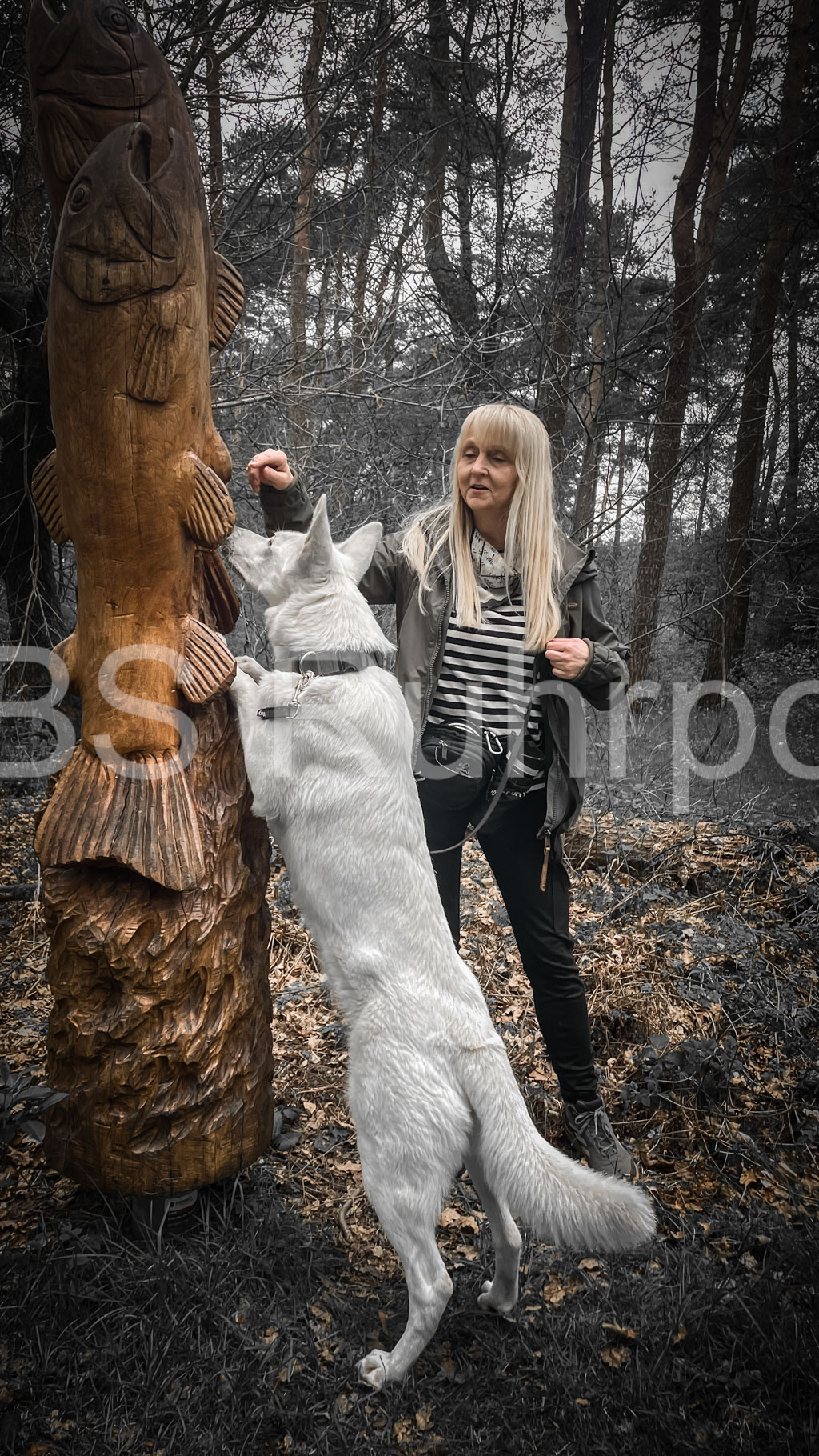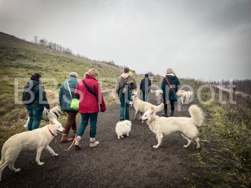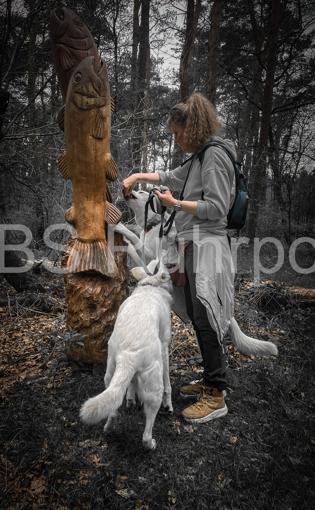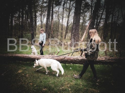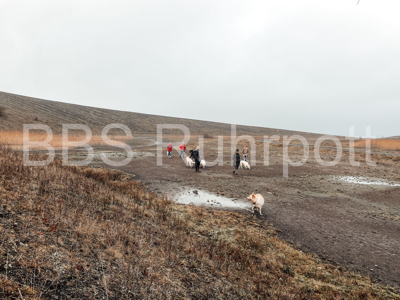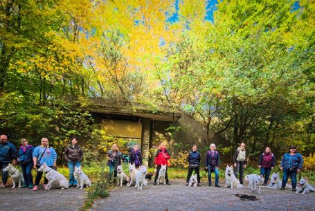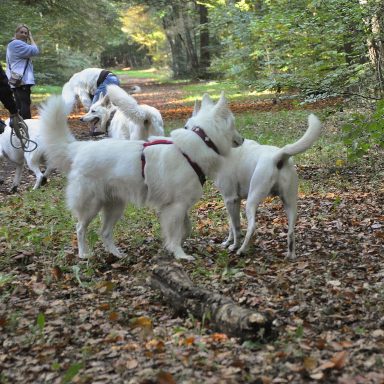 Trotz grauem Himmel strahlen die weißen Felle wie Lichtblicke im Revier. Es wird gelacht, fotografiert, gestaunt. Die Hunde laufen harmonisch nebeneinander, aufmerksam, souverän, als wären sie ein eingespieltes Rudel.
